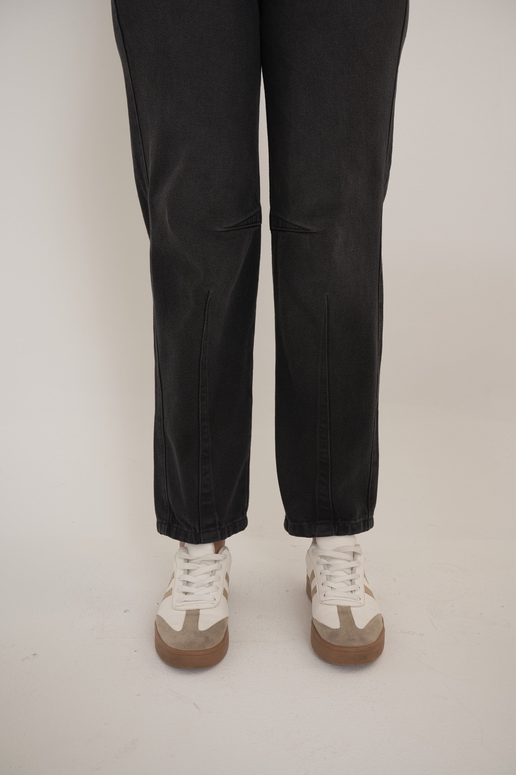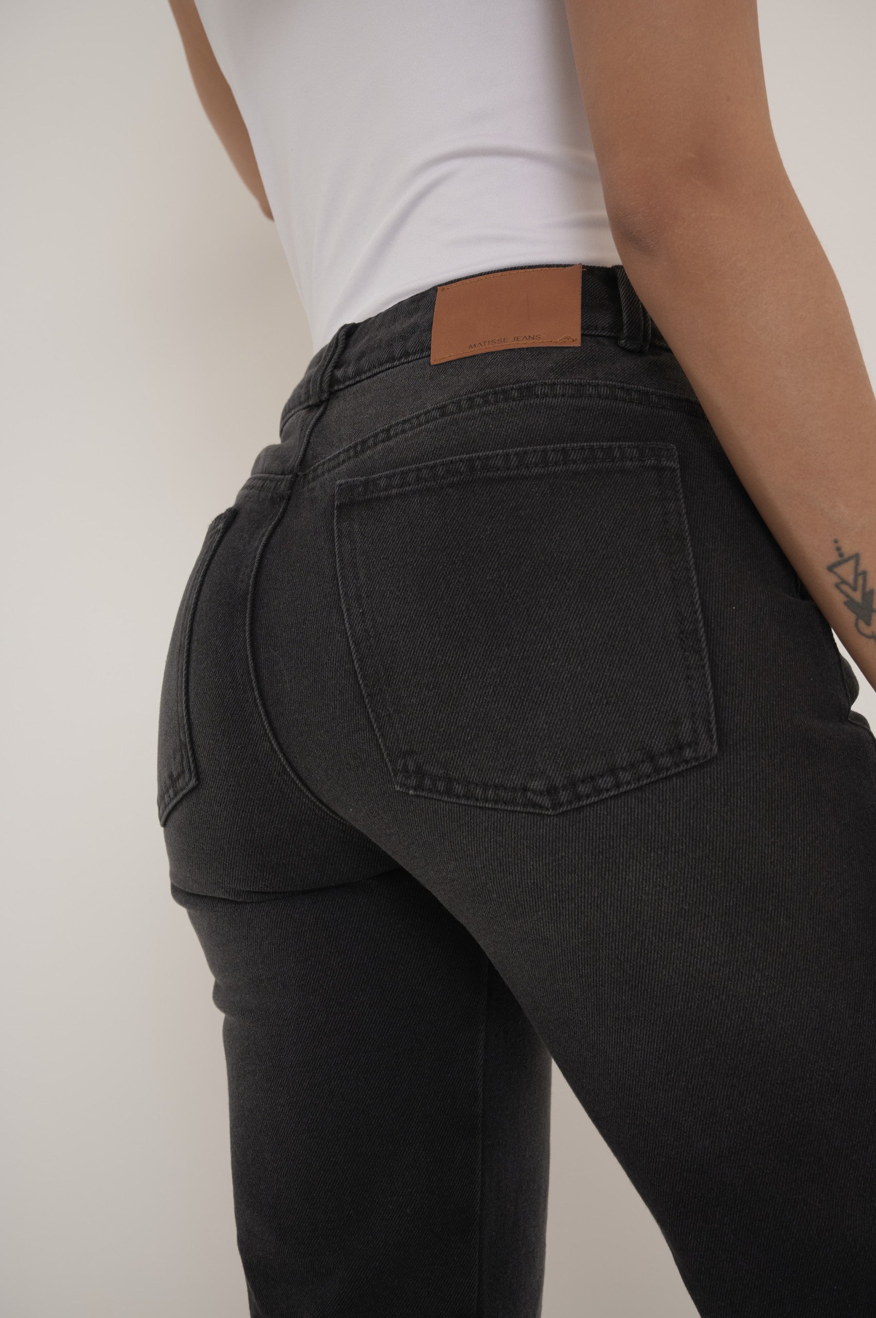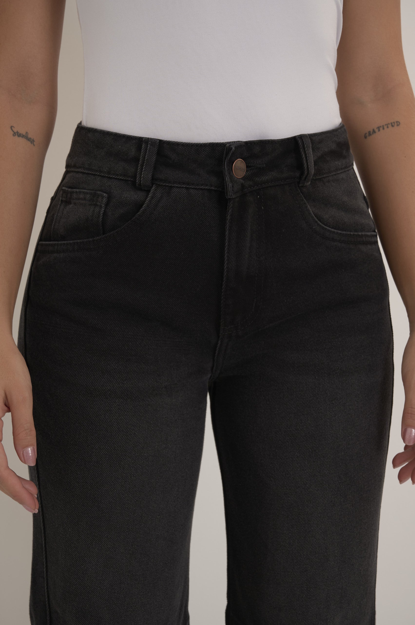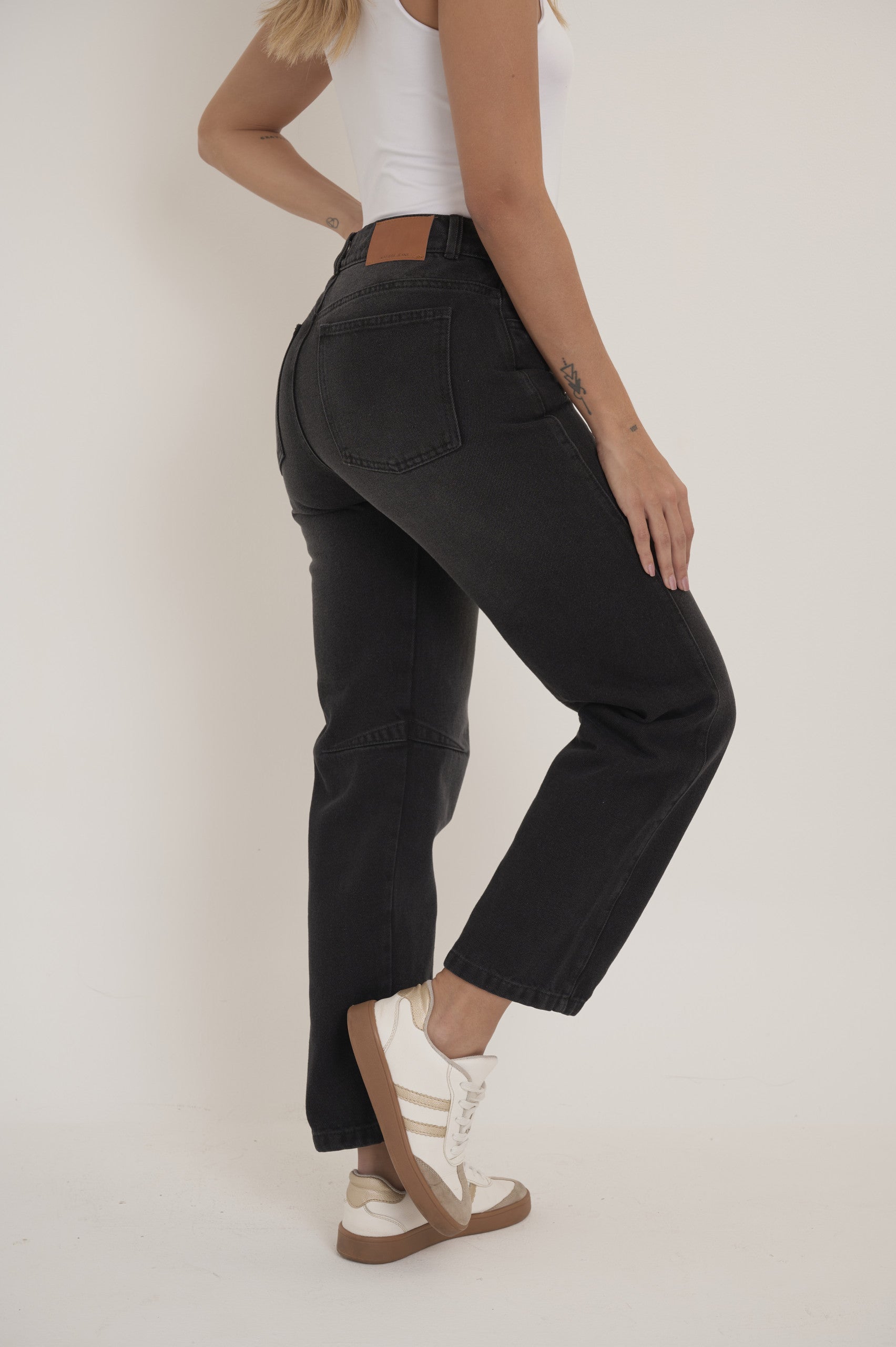 Jean rígido tipo momfit , tiro alto  color  negro  , tela 100% algodón , La modelo mide 1.75 cm   usa talla 6